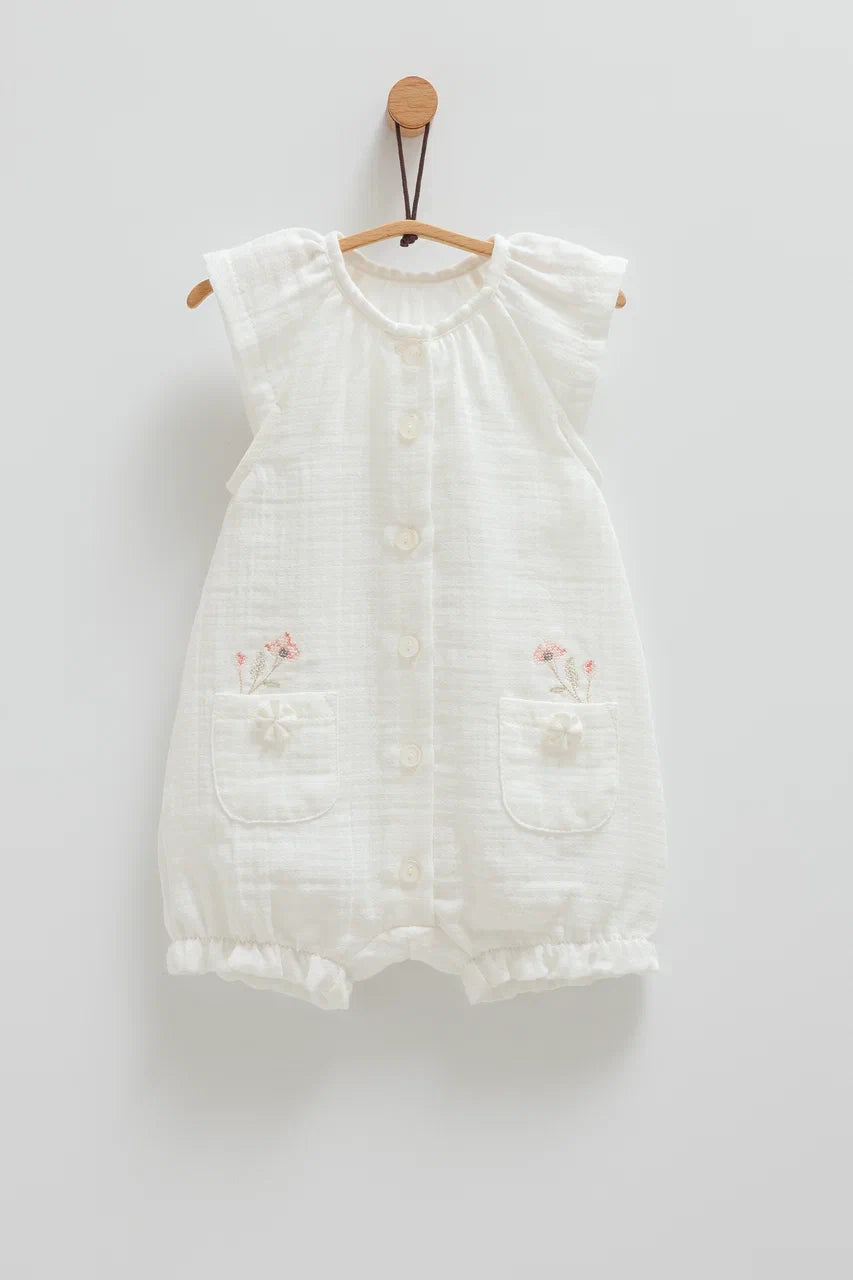 أفرهول صيفي مطرز قطن ١٠٠٪ ابيض