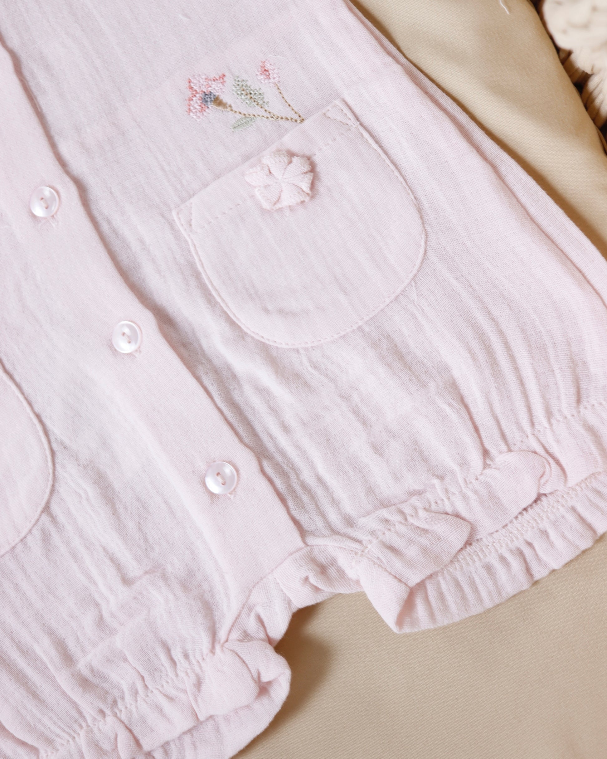 أفرهول صيفي مطرز قطن ١٠٠٪ زهري