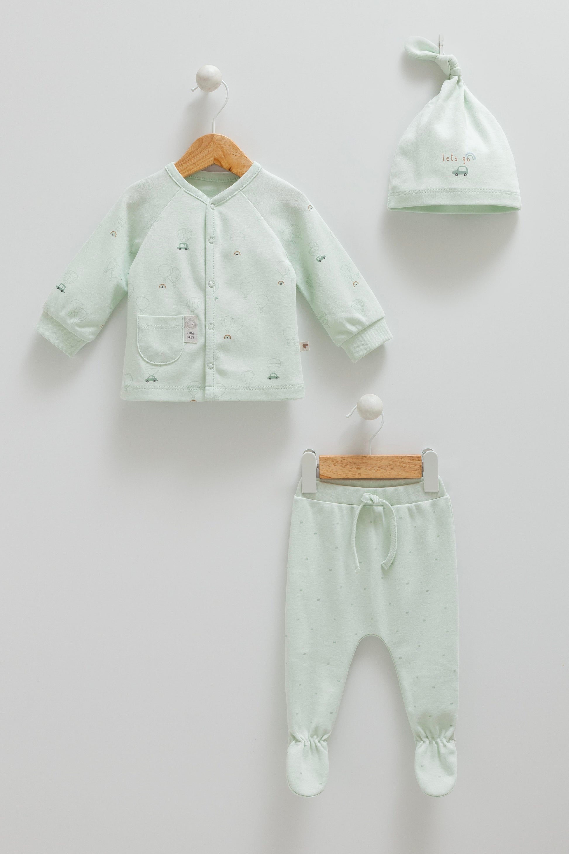 بجامة ٣ قطع قطن ١٠٠٪ أخضر ١-١٢ شهر