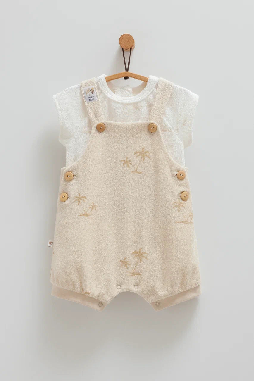 طقم أفرهول صيفي برسمة النخيل باللون بيج 🌴