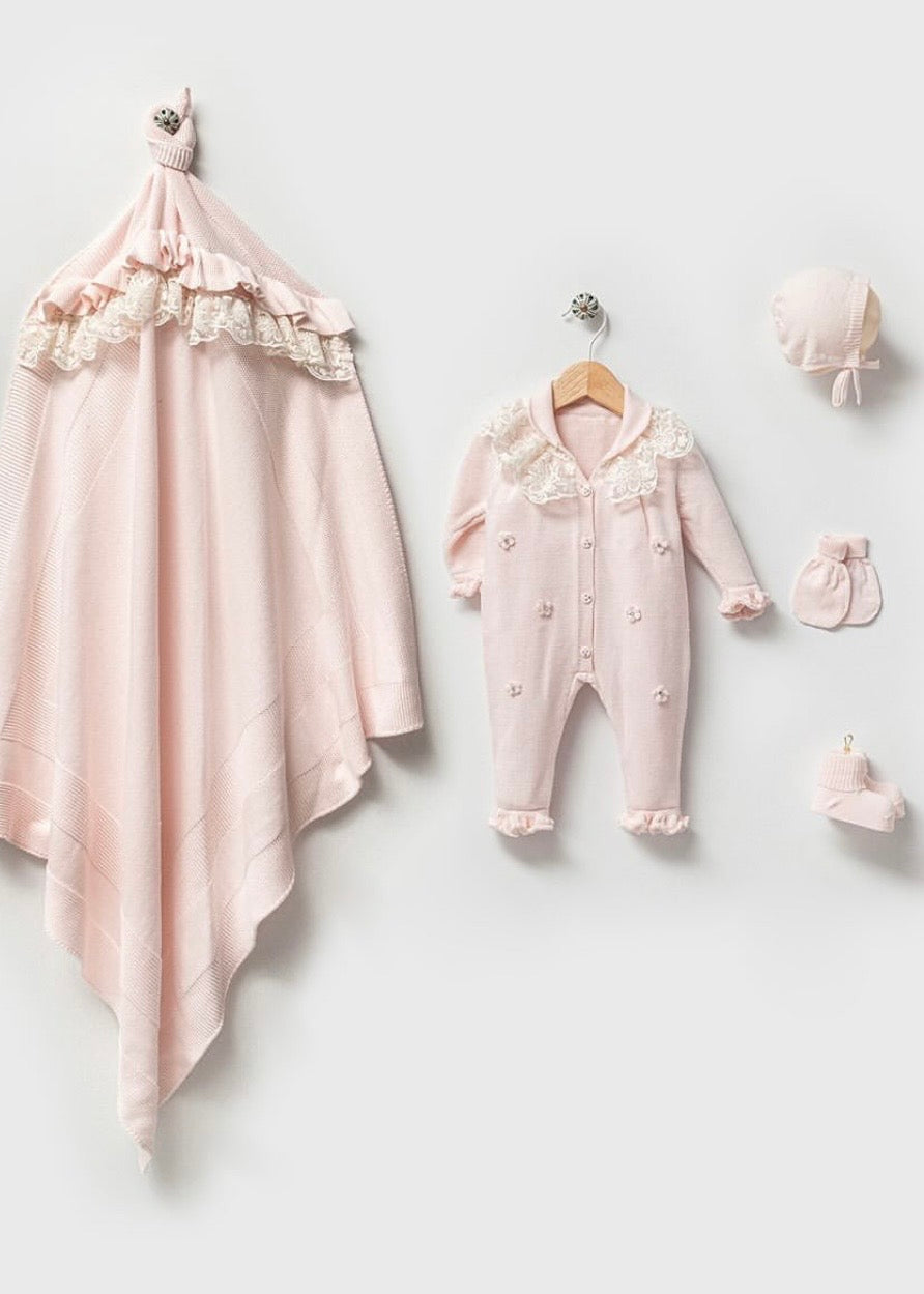 طقم بيبي حديث ولادة دانتيل قطن غزل طبيعي ١٠٠٪ زهري
