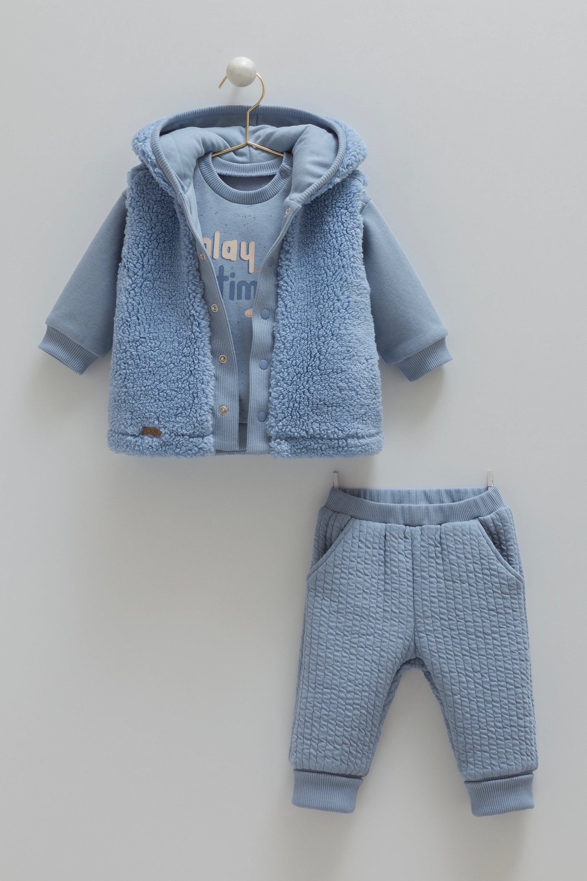 طقم بيبي قطن مبطن ٣ قطع ٣-٢٤ شهر 🦒ازرق