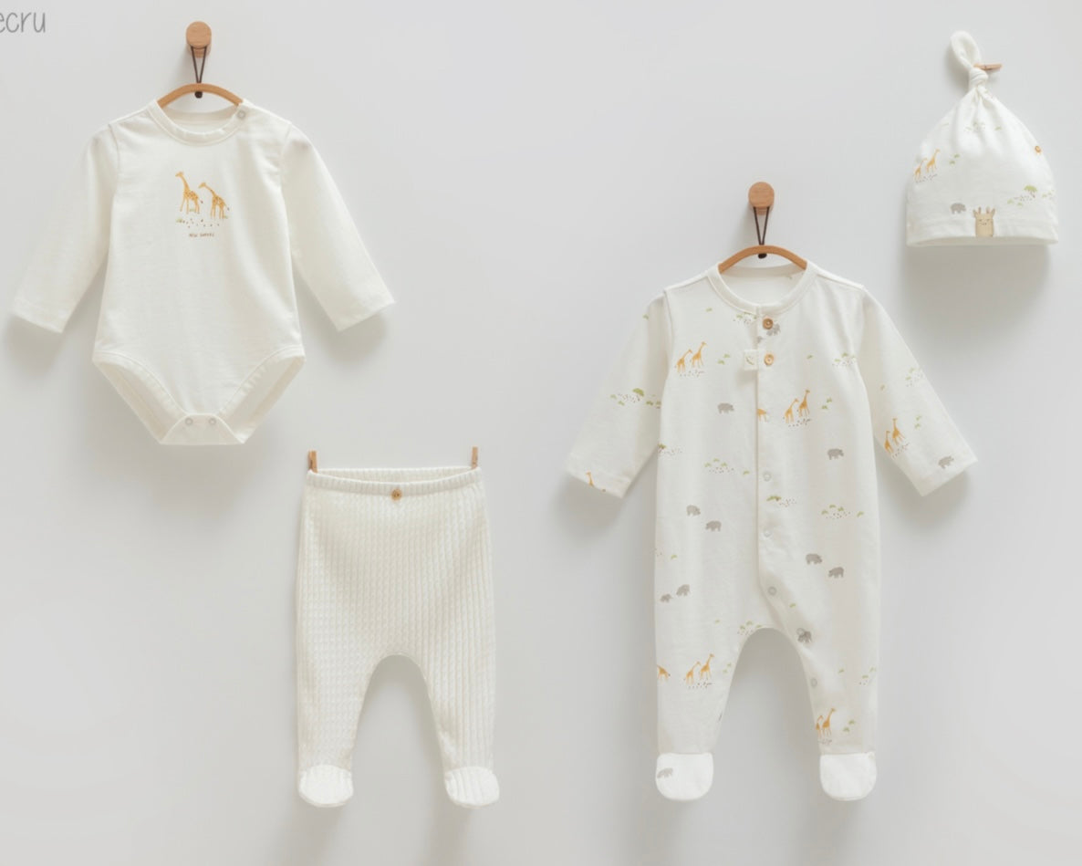 طقم بيبي قطن ١٠٠٪ ٤ قطع ١-٣ أشهر- أبيض🦒