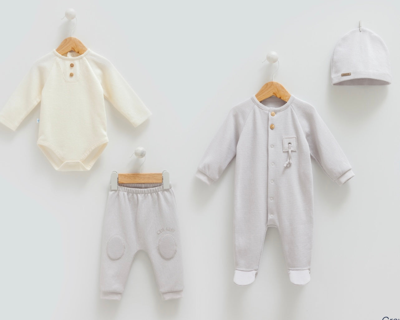 طقم بيبي قطن ٤ قطع أفرهول مع بجامة / ١-٣ أشهر رمادي
