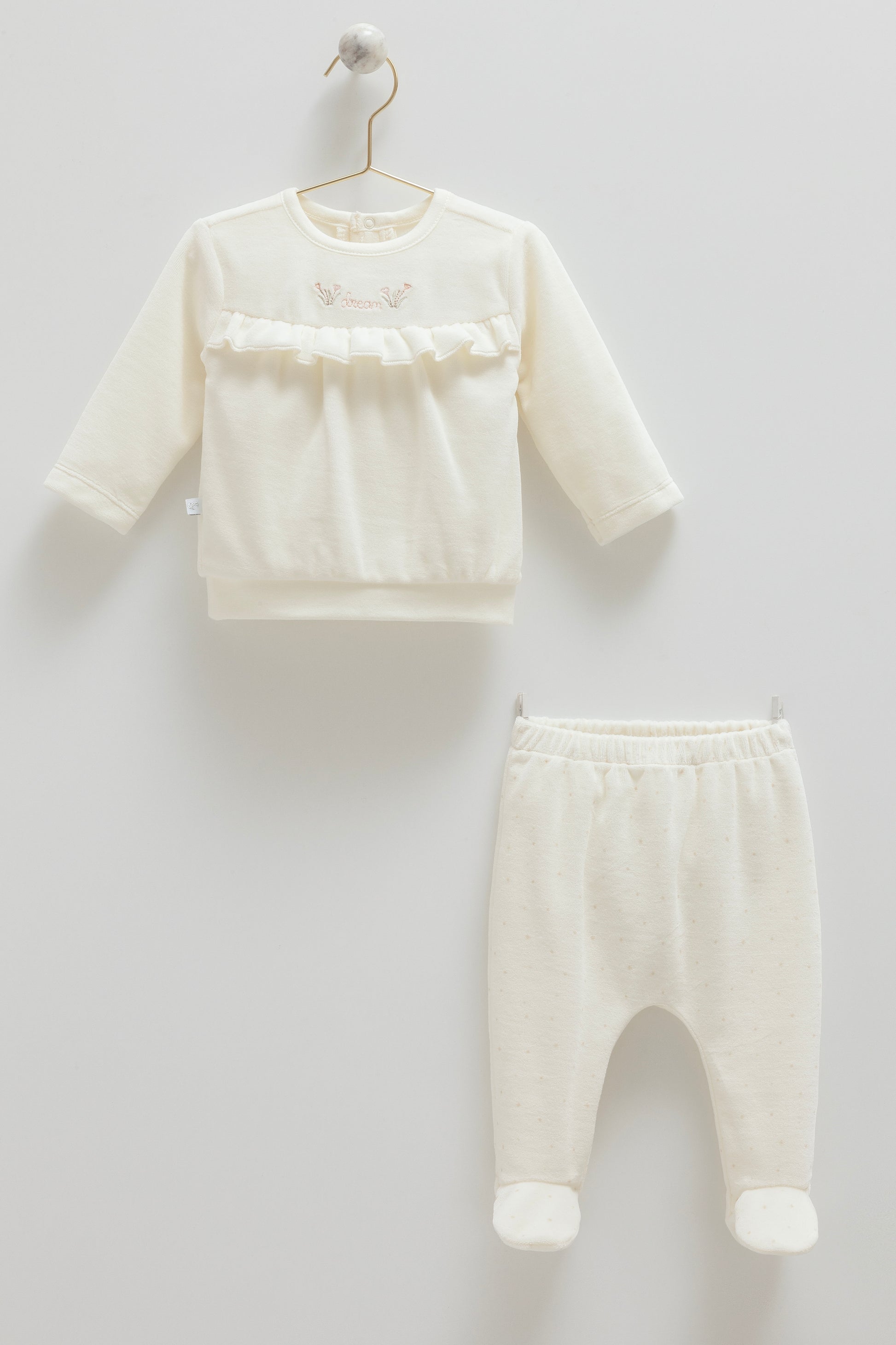 طقم بيبي مخمل١-١٢ شهر ايفوري