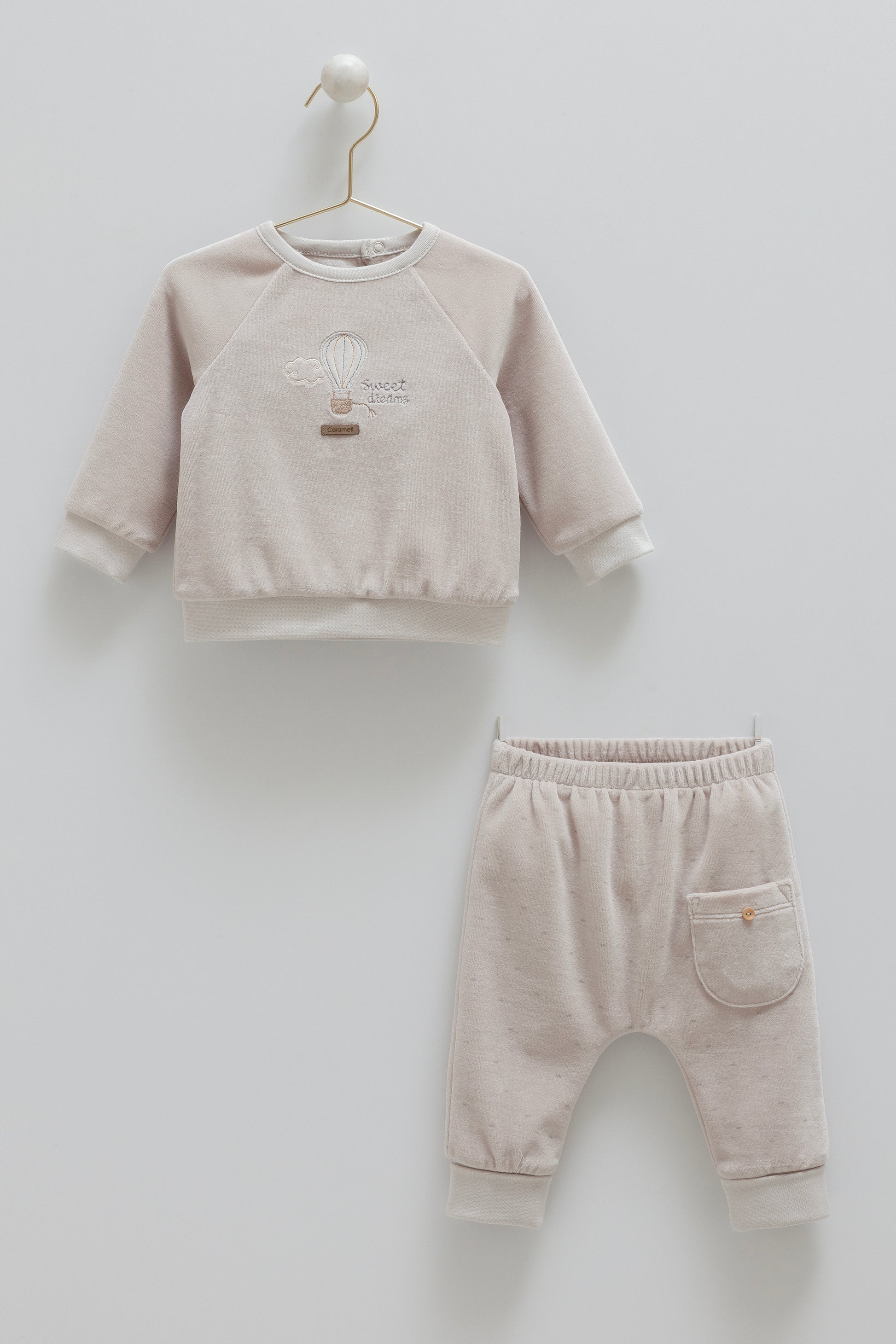 طقم بيبي مخمل١-١٢ شهر رمادي