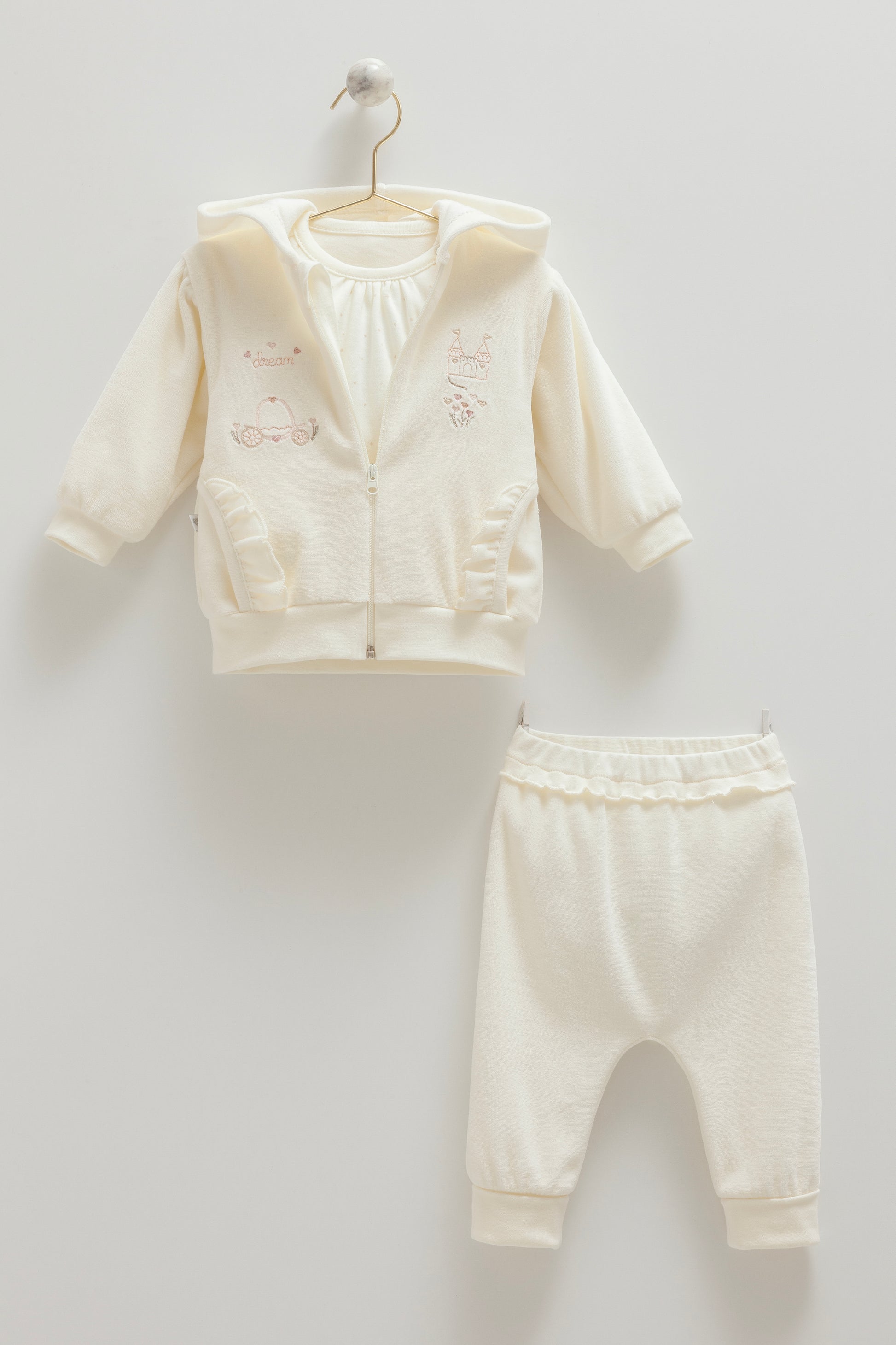 طقم بيبي مخمل ٣ قطع ٣-١٨شهر ايفوري