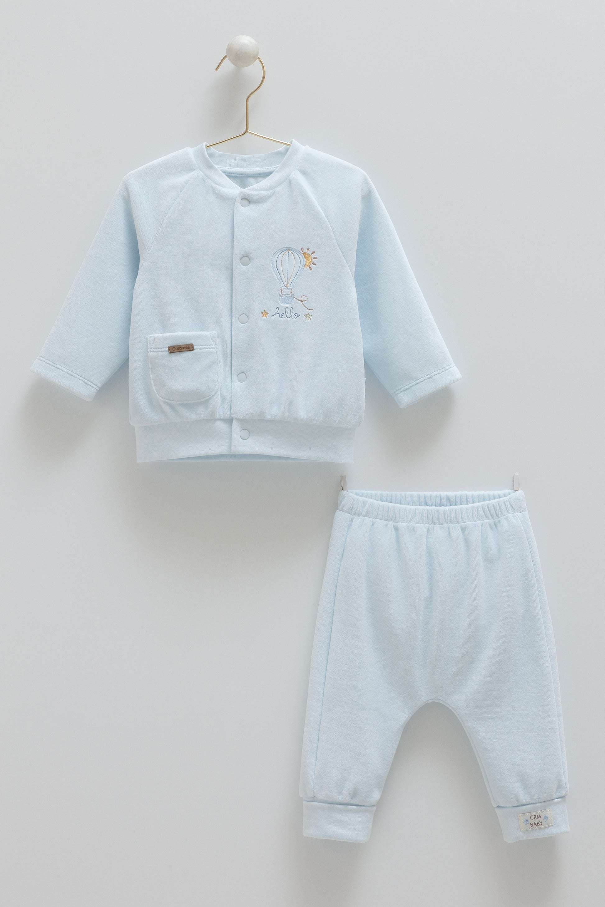 طقم بيبي مخمل ٣-١٨شهر ازرق