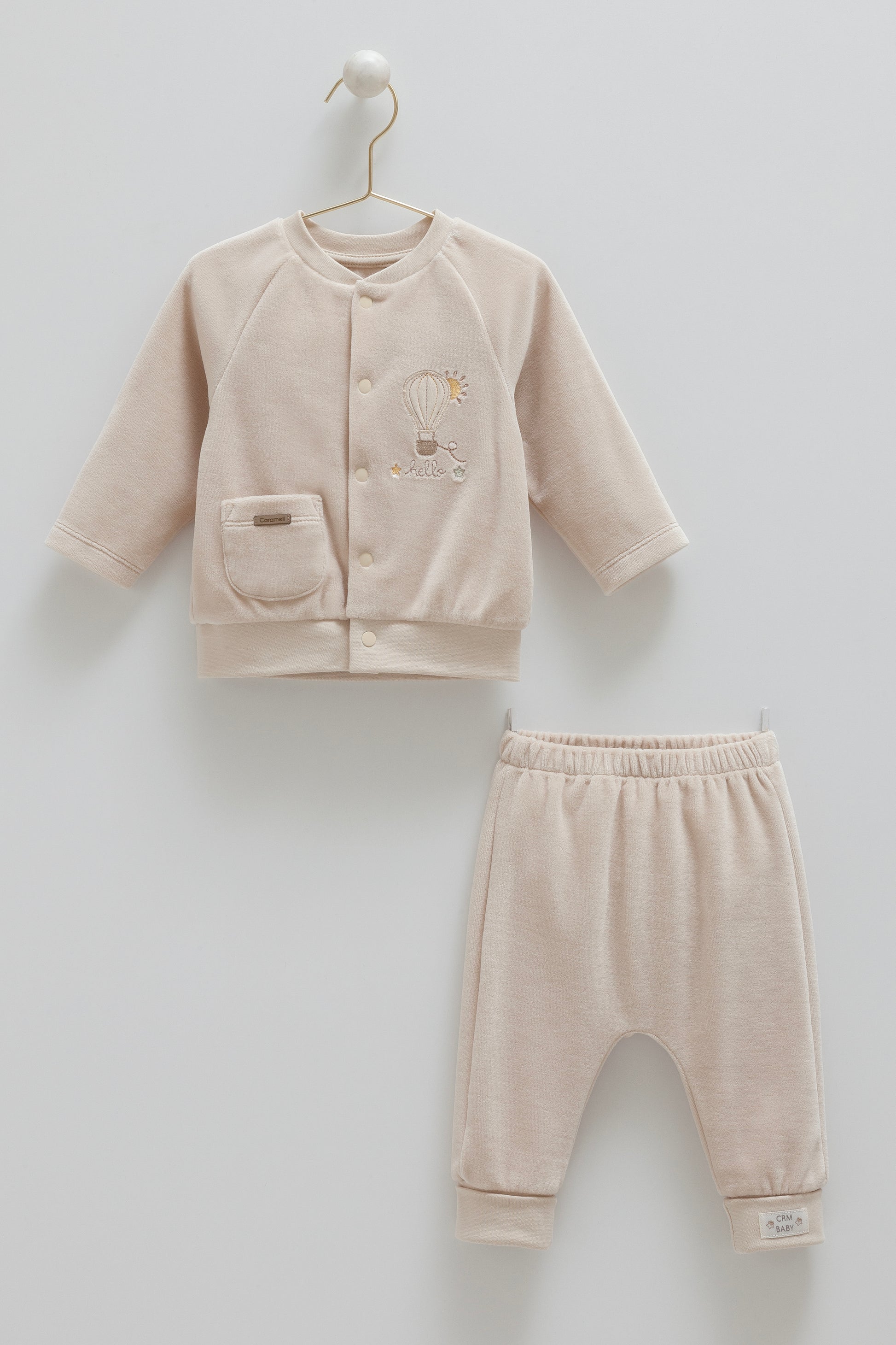 طقم بيبي مخمل ٣-١٨شهر بيج