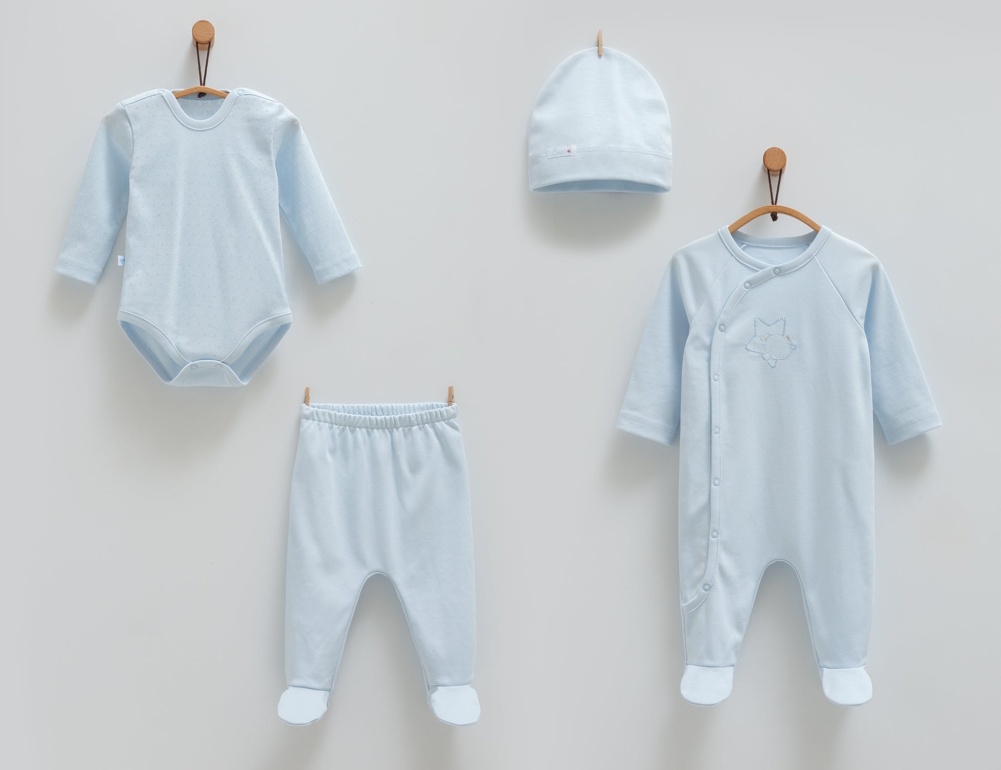طقم بيبي ٤ قطع🪡قطن طبيعي ١٠٠٪ ازرق