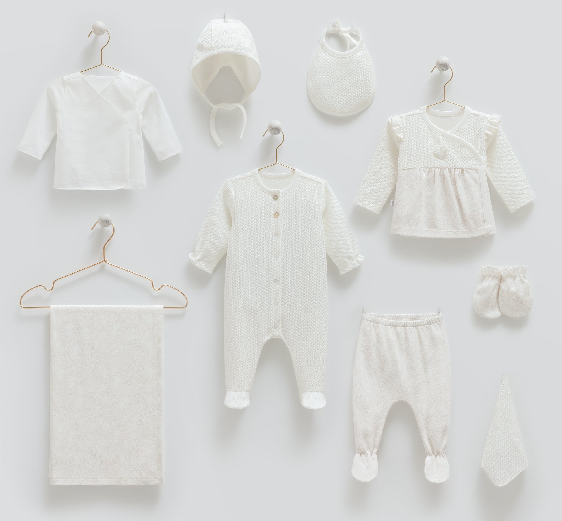 طقم حديث ولادة ١٠ قطع🪡قطن طبيعي ١٠٠٪ ابيض