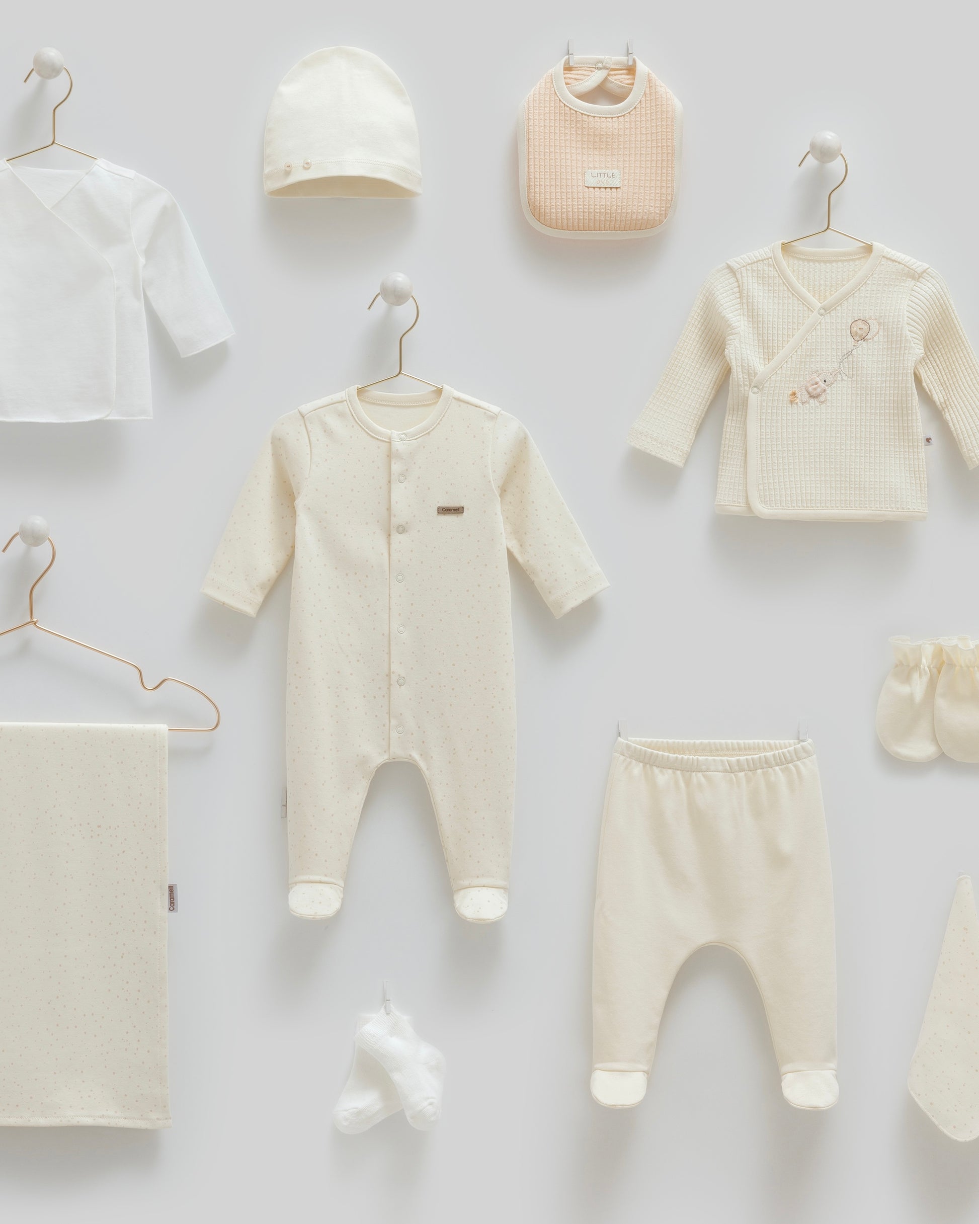 طقم حديث ولادة ١٠ قطع🪡قطن طبيعي ١٠٠٪‏ بيج