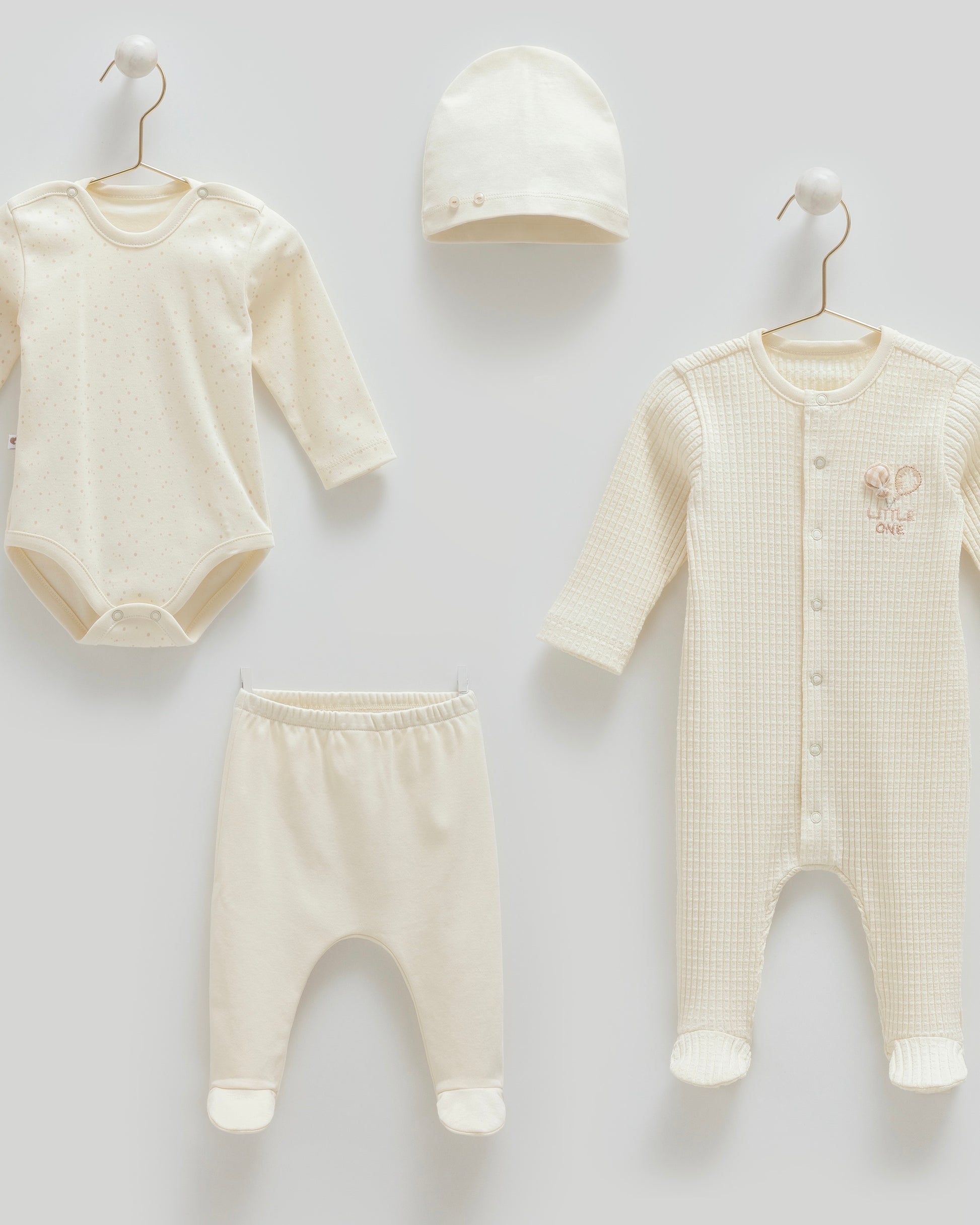 طقم حديث ولادة ٤ قطع🪡قطن طبيعي ١٠٠٪‏