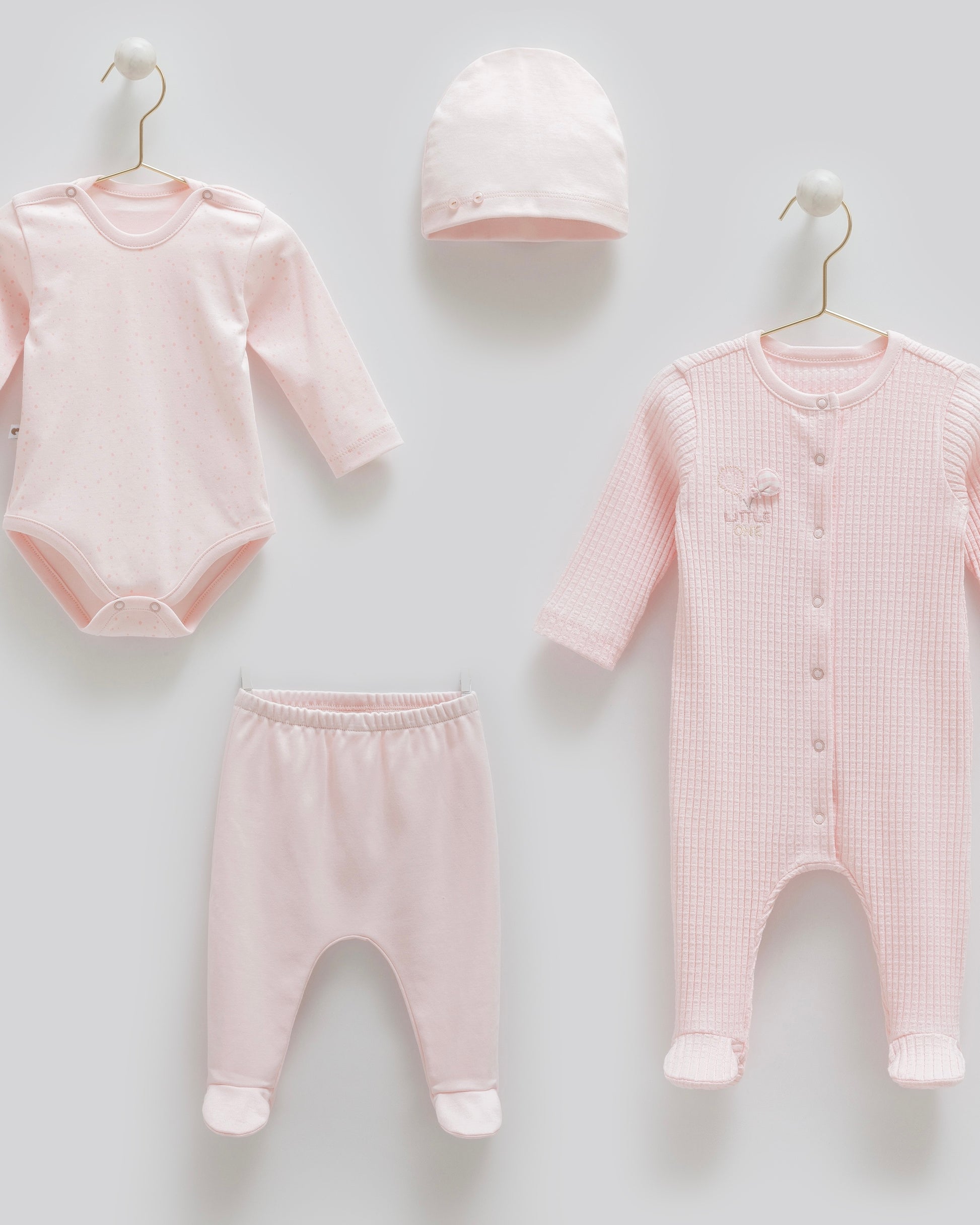 طقم حديث ولادة ٤ قطع🪡قطن طبيعي ١٠٠٪‏