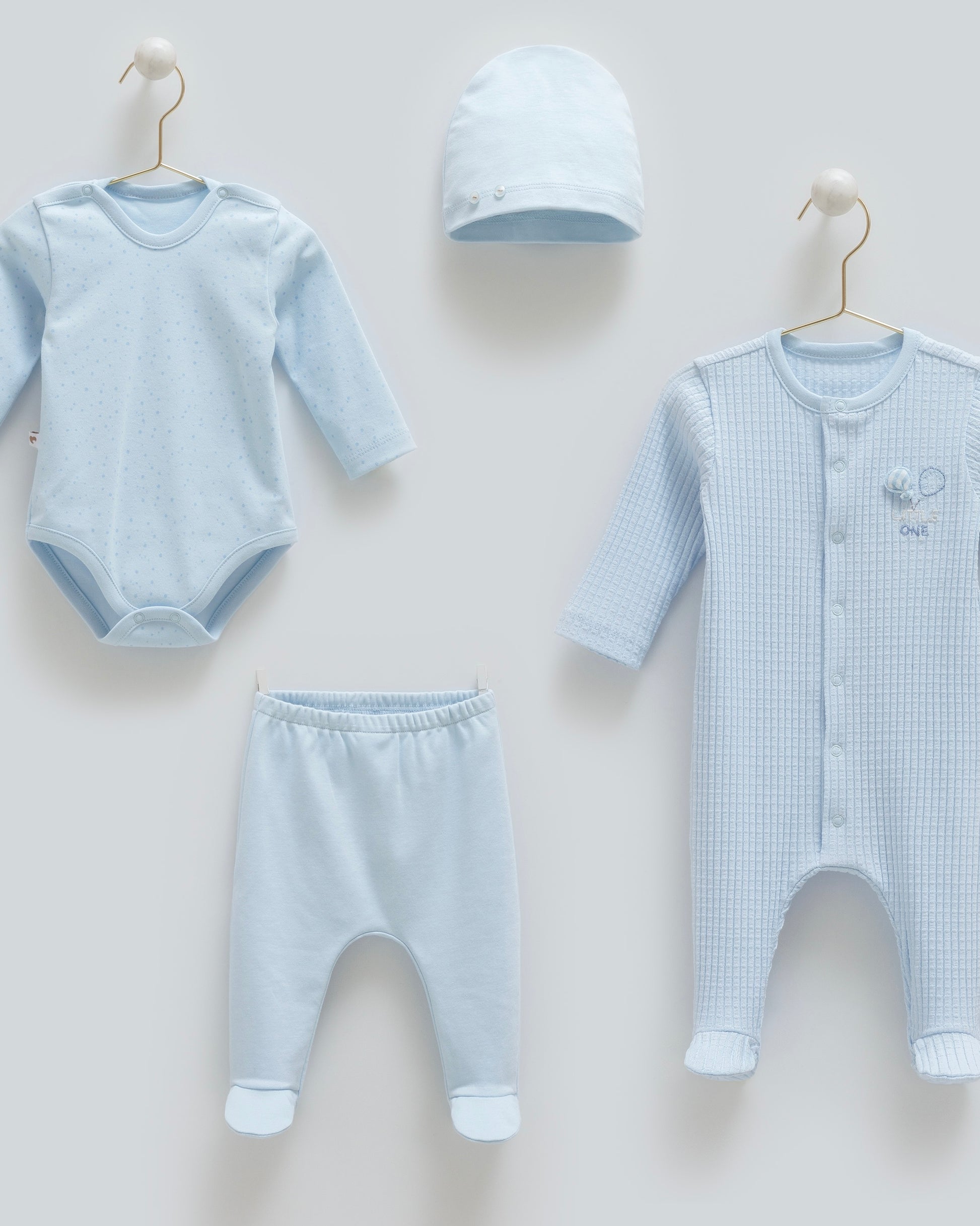 طقم حديث ولادة ٤ قطع🪡قطن طبيعي ١٠٠٪‏
