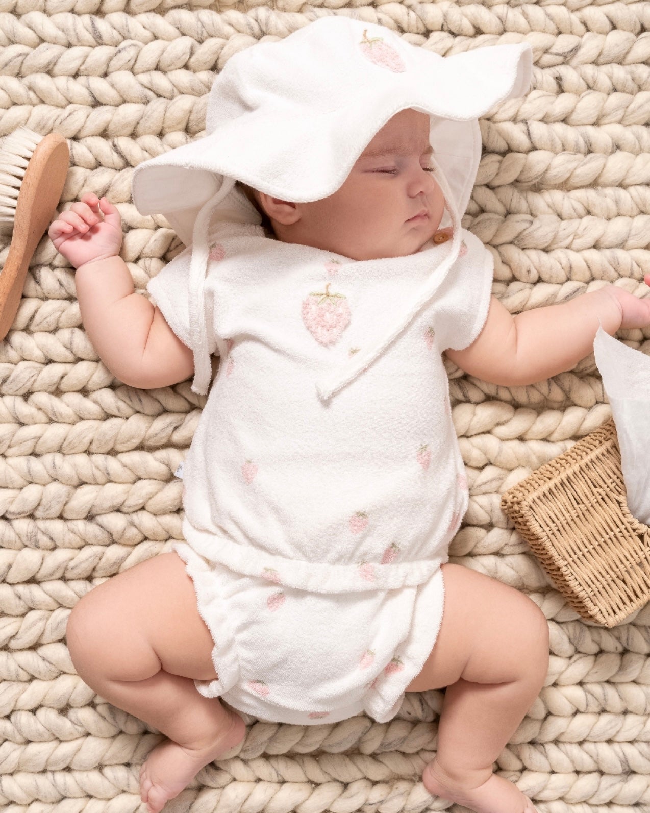 طقم صيفي برسمة الفراولة قطعتين - الأبيض🍓