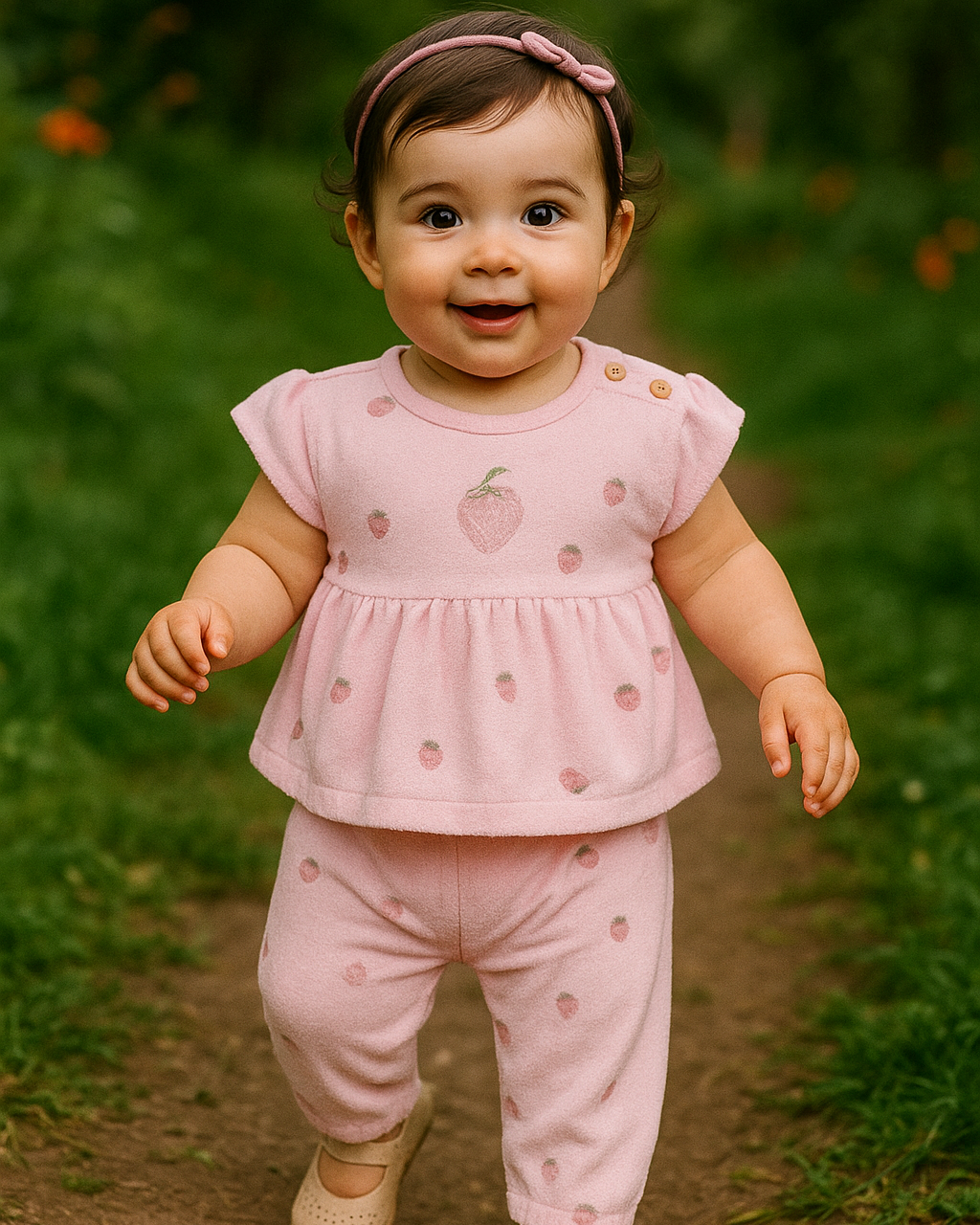 طقم صيفي برسمة الفراولة - الزهري🍓