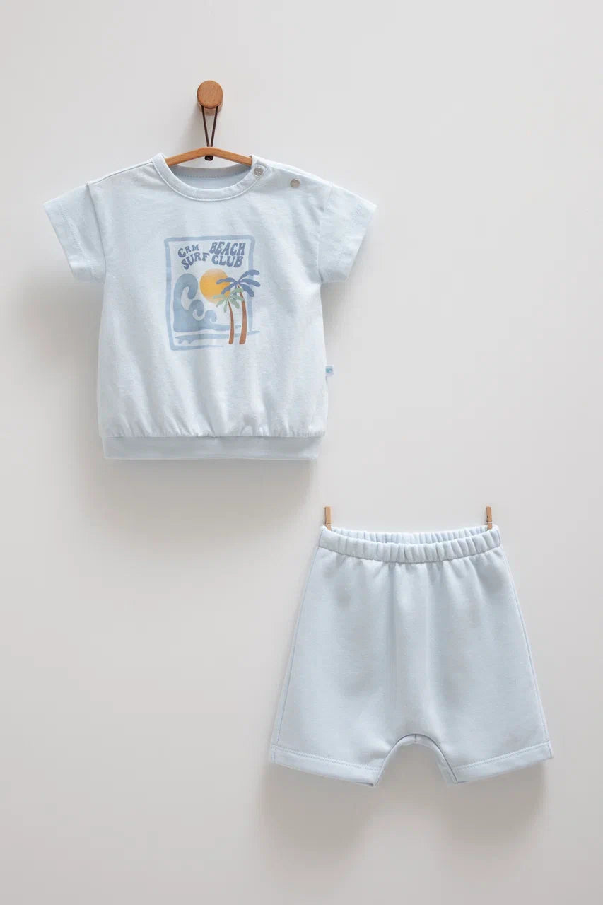 طقم صيفي قطن١٠٠٪ ازرق ٣-١٨ شهر