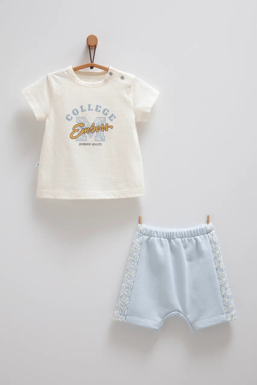 طقم صيفي قطن١٠٠٪ ازرق فاتح ٣-١٨ شهر