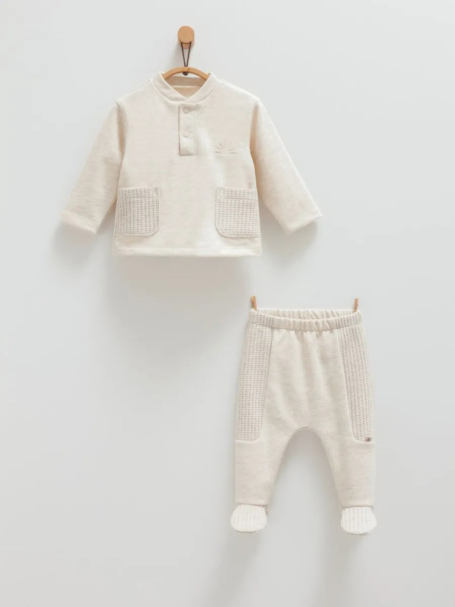 طقم قطعتين قطن ١٠٠٪ بيج فاتح ١-١٢ شهر