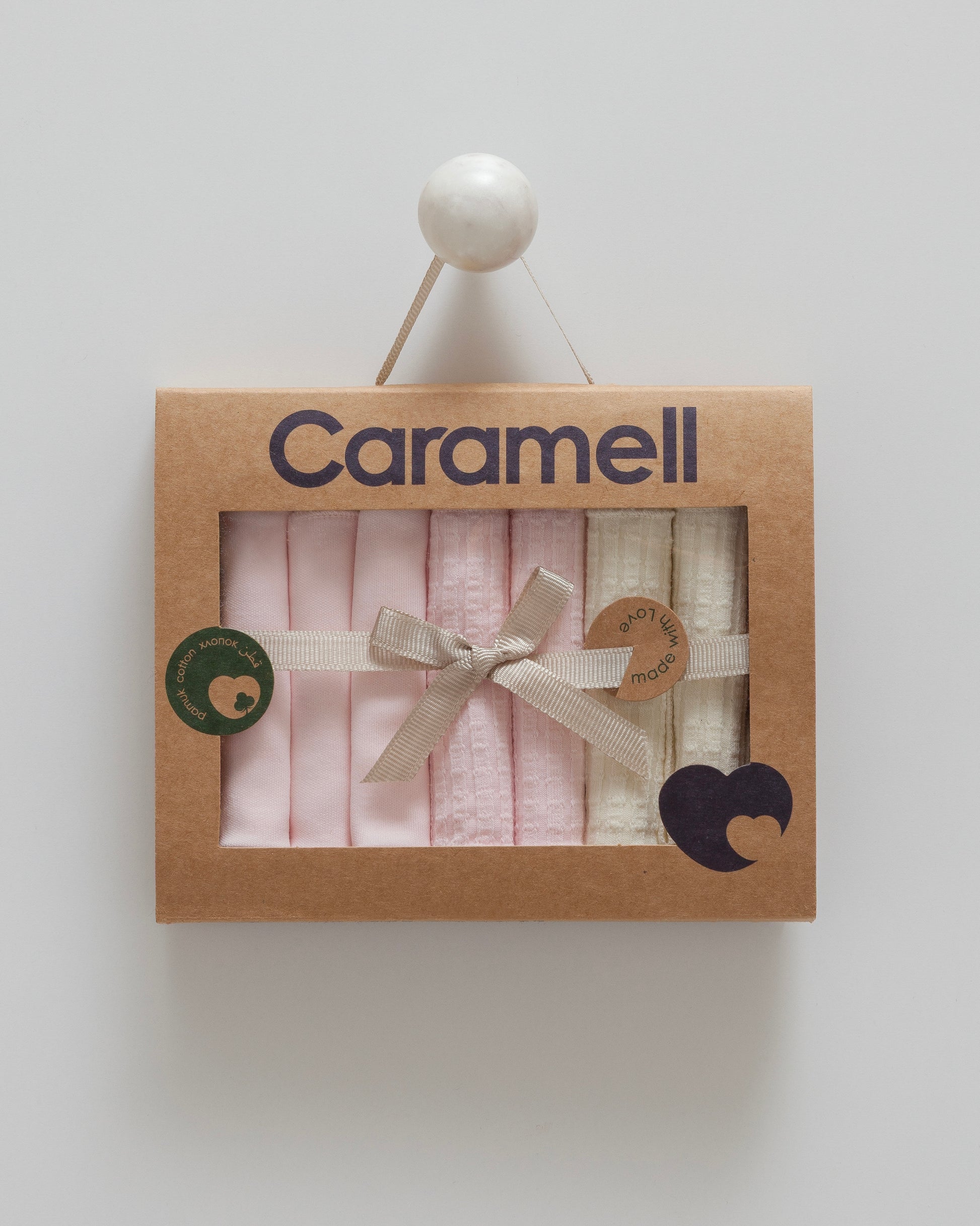 طقم مناديل بيبي قطن طبيعي ١٠٠٪ ٧ قطع زهري