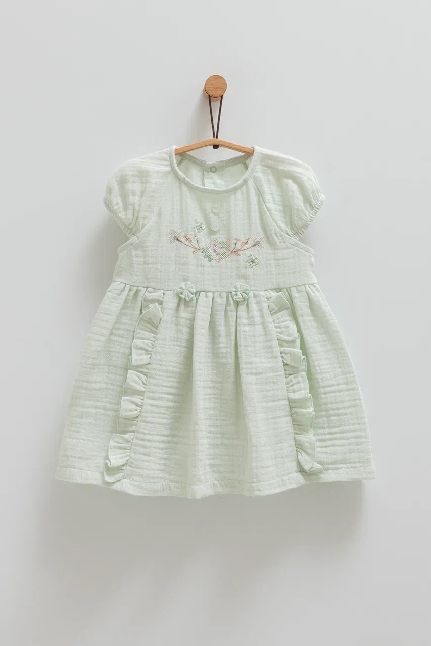 فستان صيفي مطرز خفيف قطن١٠٠٪ أخضر ٦-٢٤شهر