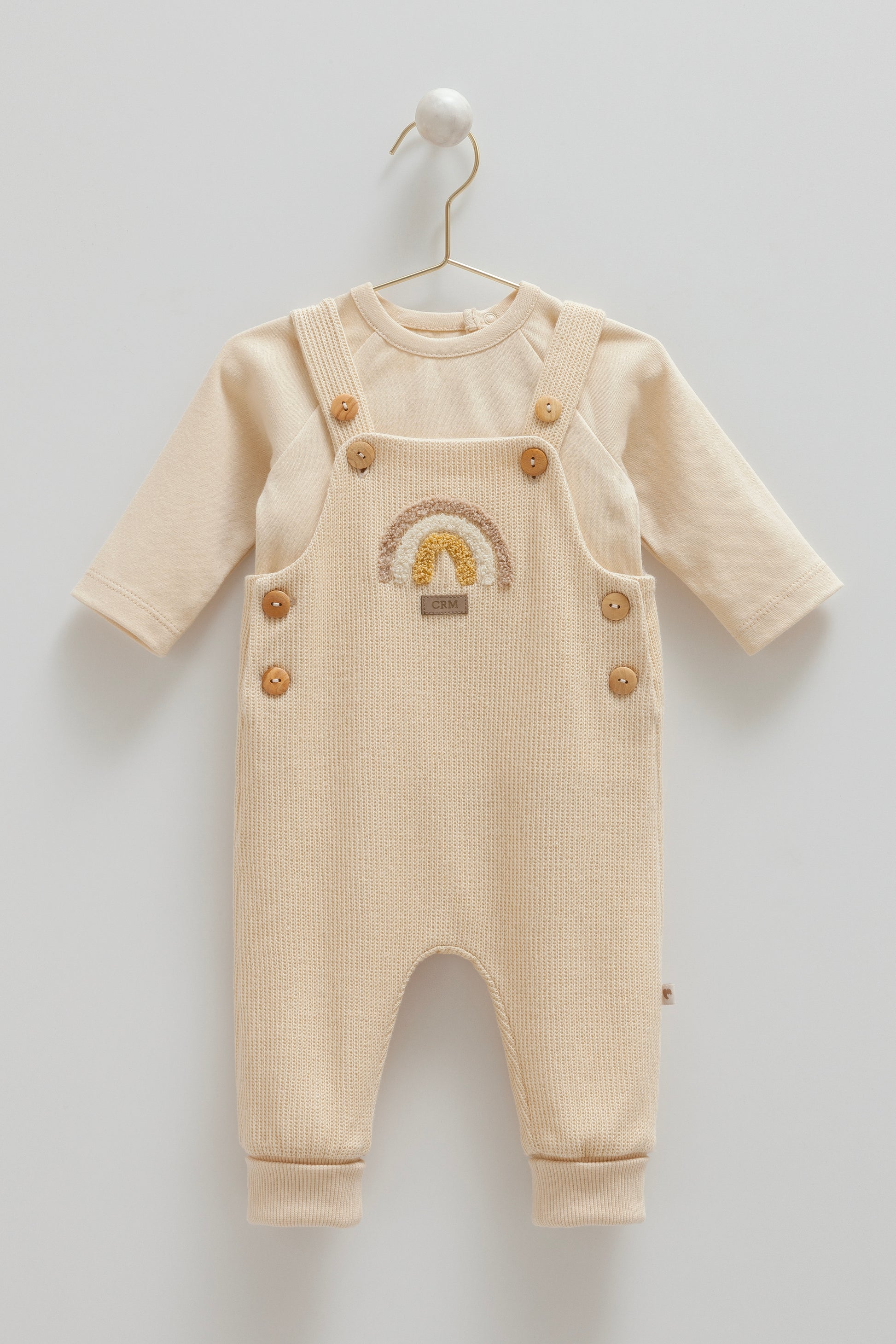 طقم أفرهول قطن شتوي ١-١٢ شهر🌨️ عسلي