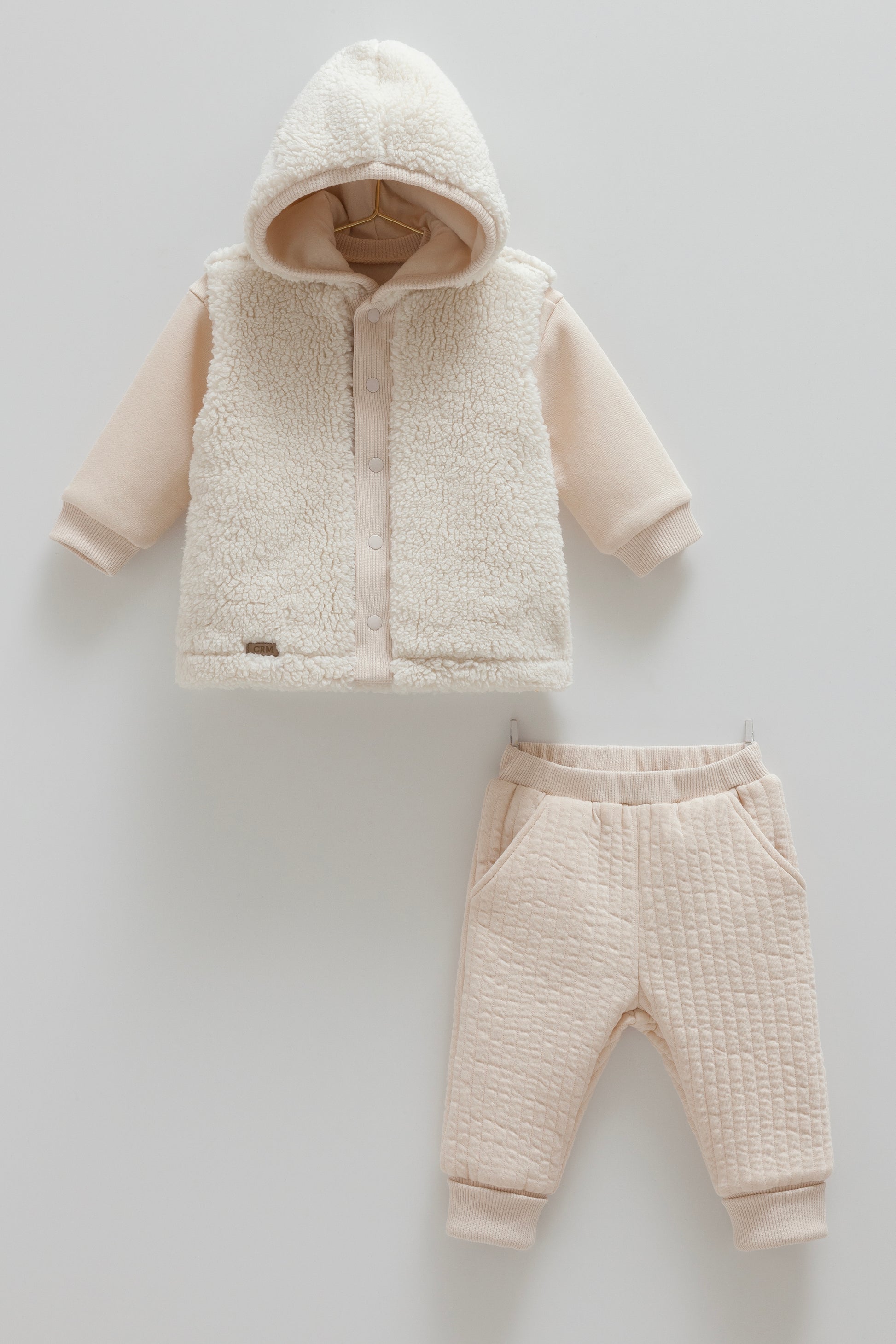 طقم بيبي قطن مبطن ٣ قطع ٣-٢٤ شهر 🦒ايفوري