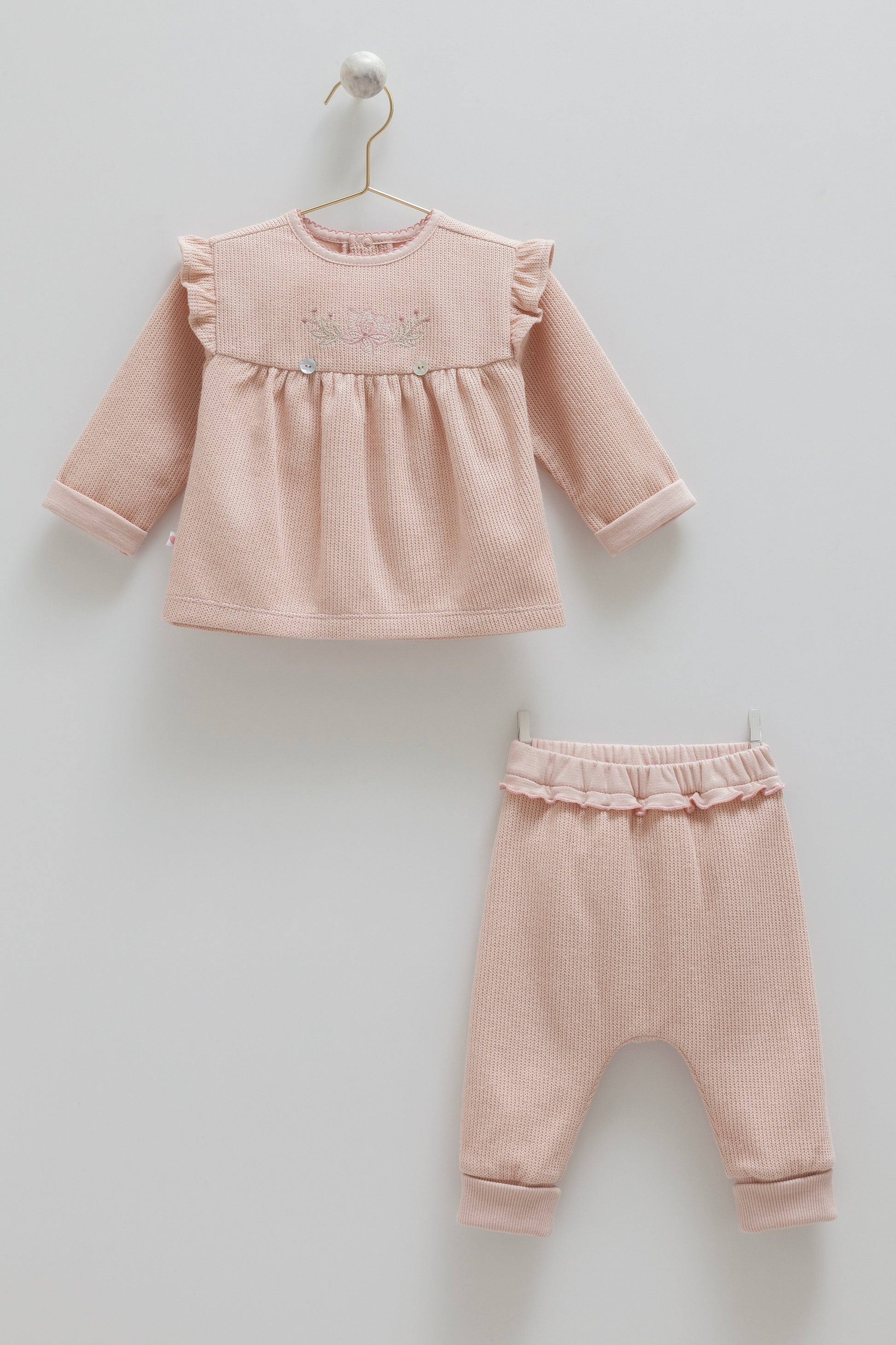 طقم قطعتن قطن ثقيل١٠٠٪ زهري 🌸٣-١٨ شهر