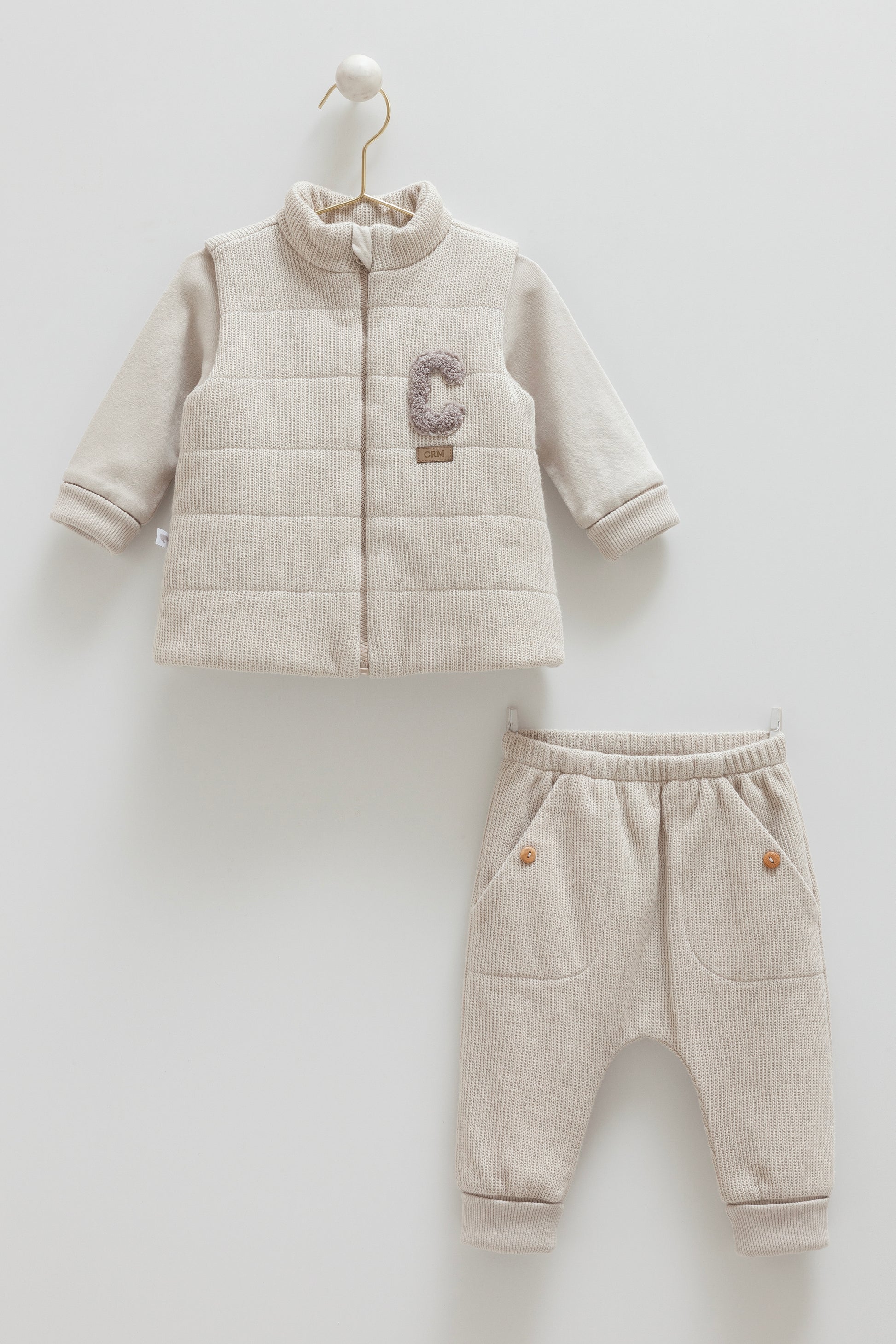 طقم ٣ قطع قطن شتوي ١٠٠٪ رمادي✨٣-١٨ شهر